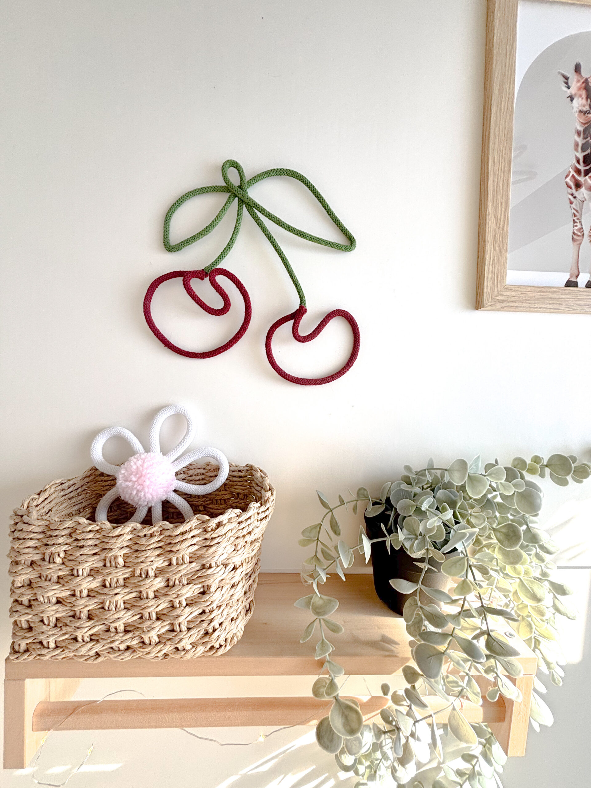 Measuring 8″ x 9″, it’s the perfect size for styling above shelves, cots, toy corners, or as part of a gallery wall. Lightweight and easy to hang, this cherry decoration adds a fun yet modern touch to pastel, boho, and Scandinavian-inspired interiors.