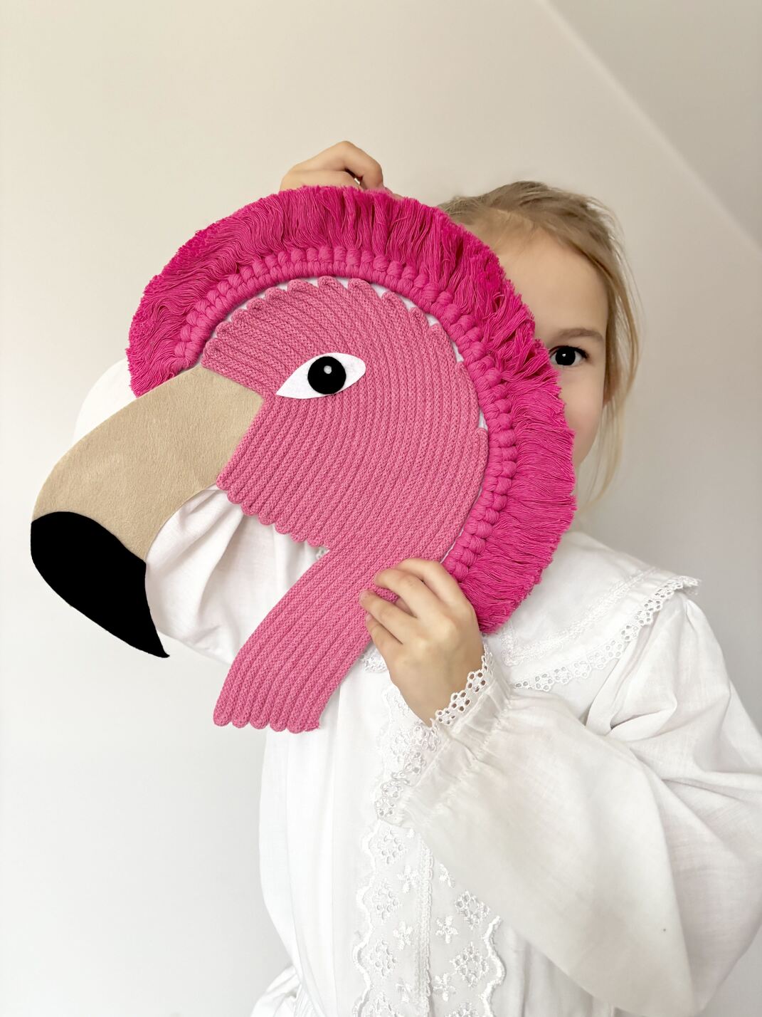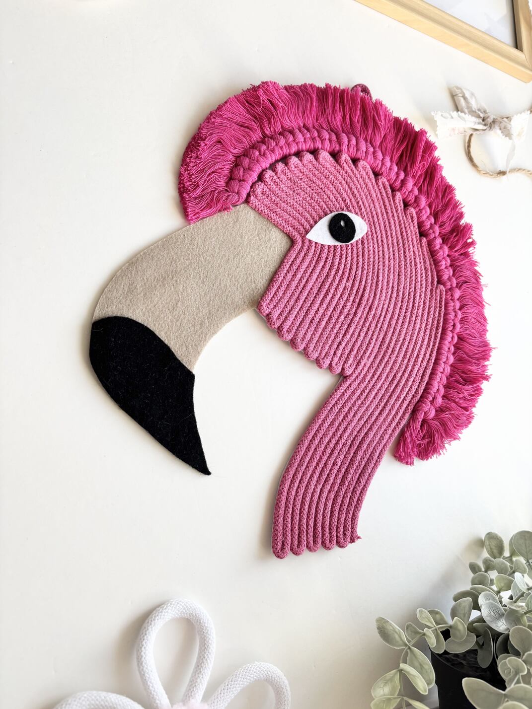 This handmade flamingo head wall decoration is a fun and charming accent for a kids room, nursery, or playroom. With its soft colors and playful design, it adds personality while still fitting beautifully into neutral, boho, or modern nursery styles.