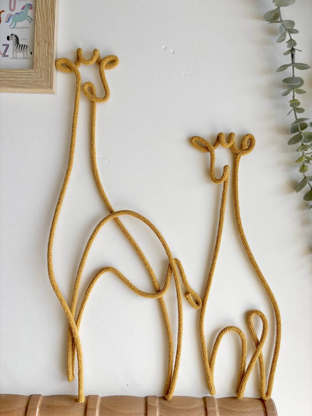 Add a playful and cozy touch to your space with this handcrafted giraffe nursery wall decor set made from rope and wire. Perfect for safari, boho, or neutral nurseries, it brings warmth, texture, and charm to any baby or kids room.
