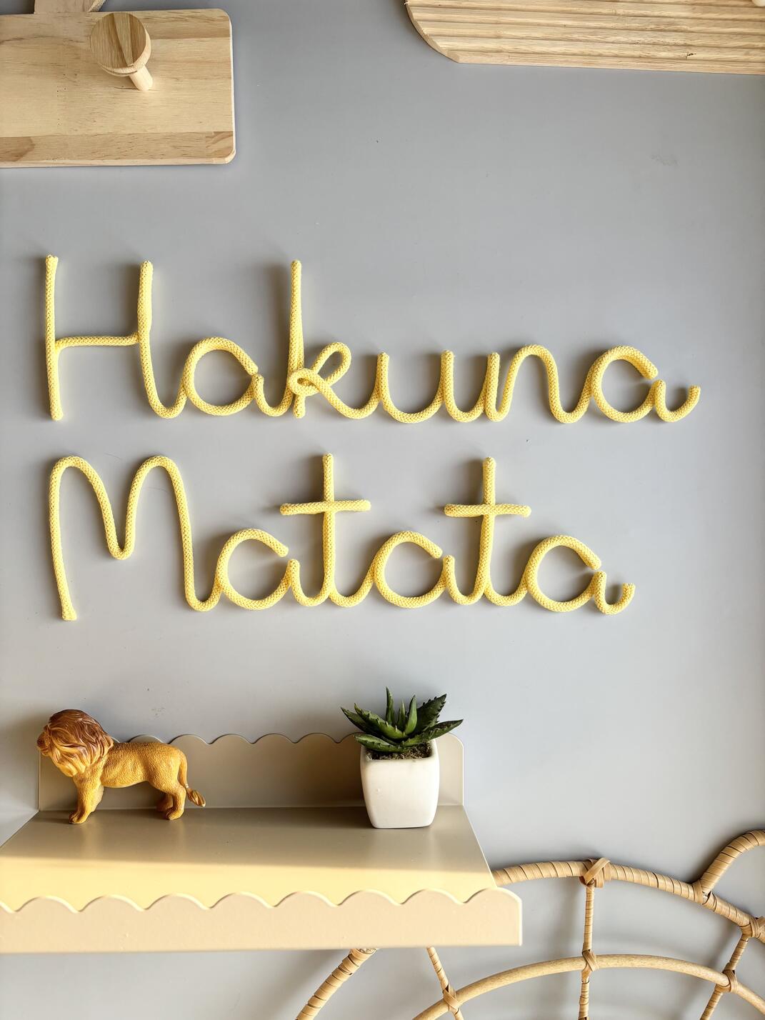 Add a fun and carefree touch to your child’s space with this handmade “Hakuna Matata” wall decor. Perfect for jungle-themed nurseries, kids rooms, or playrooms, it brings warmth and playful energy.