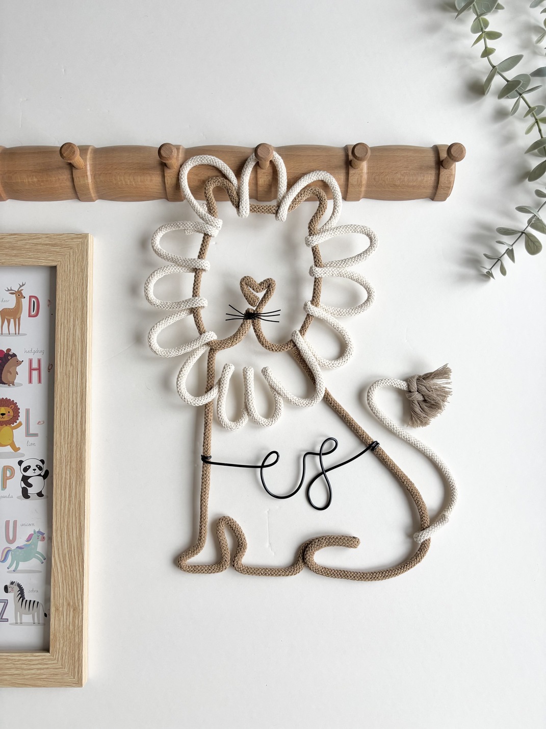 Add a warm and playful touch to your child’s space with this personalized lion wall decor. Handmade with rope and wire, it’s perfect for safari, jungle, or boho-themed nurseries and kids rooms.