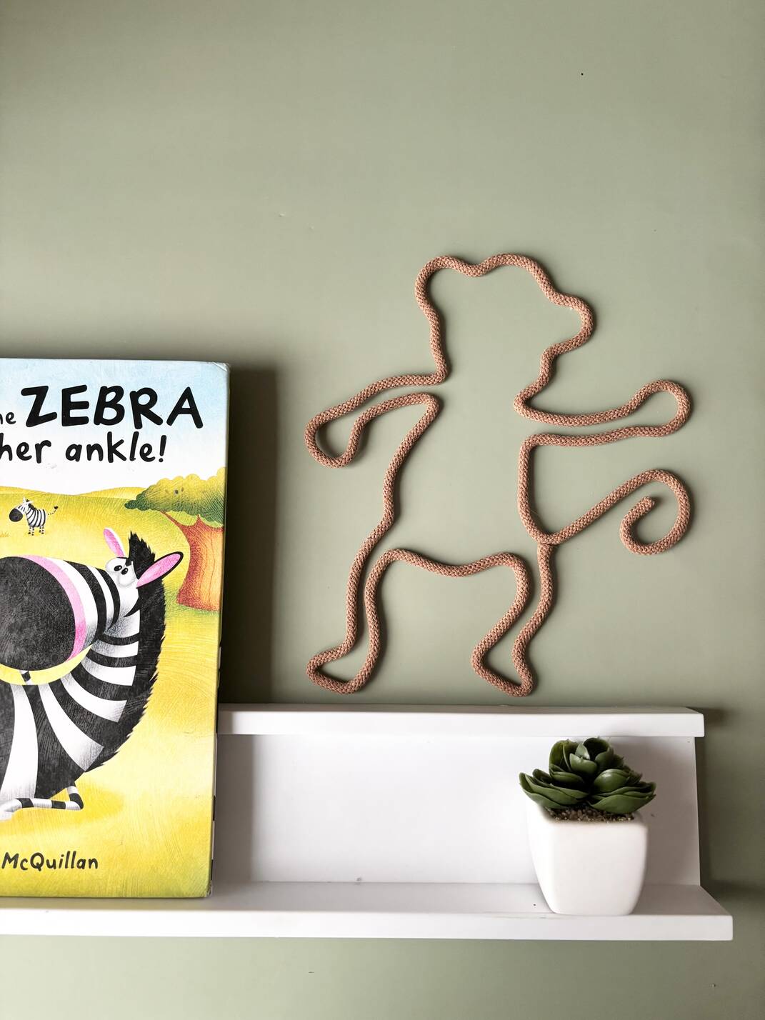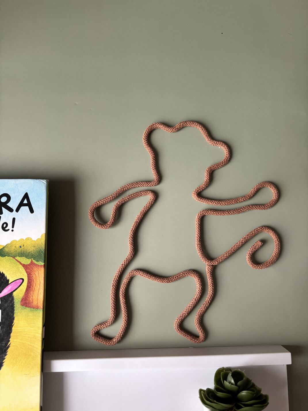 Add a fun jungle touch to your child’s space with this adorable monkey wall decor. Handmade from rope and wire, it brings playful charm and warmth to nurseries, playrooms, or safari-themed rooms.